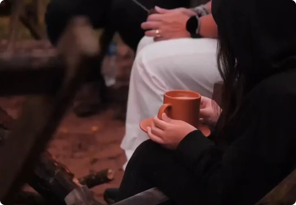 Each night we light a communal fire where guests share stories, songs, or silence. A simple ritual that renews the soul.